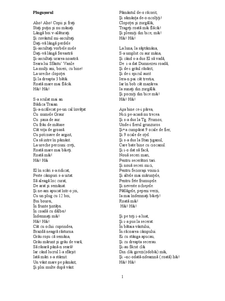Maine anul se inoieste plugusorul se porneste si incepe a ura pe la case a colinda iarna i grea omatu i mare semne bune anul are semne bune de belsug pentru brazda de sub plug. Aho aho copii și frați stați putin și nu mânați lângă boi v alăturați și cuvântul mi ascutați. Decembrie 30 2017 distribuiți pe facebook. Aho aho copii și frați stați puțin și nu mânați avantaje cumpărați tradiția să o păstrați.