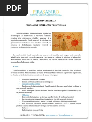 Atrofia cerebrala se vindeca. Oamenii nu se simt de obicei bolnavi si inflamatia se vindeca dupa cateva saptamani fara tratament. Cum previi atrofia cerebrală. Atrofia cerebrala denumeste orice degenerare morfologica si functionala a tesutului cerebral produsa prin distrugerea celulelor nervoase si a legaturilor neuronale. Cand procesul de atrofiere se generalizeaza si afecteaza toata structura cerebrala se observa si deshidratarea tesutului cerebral si reducerea in dimensiuni a acestuia.