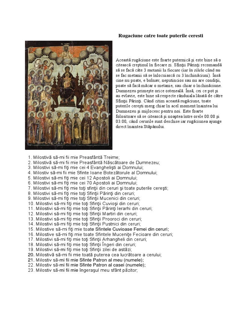 Când citim această rugăciune toate puterile cereşti merg chiar în acel moment înaintea lui dumnezeu şi mijlocesc pentru noi. Iulie 19 2015 iulie 19 2015 multumesc2014. Când citim această rugăciune toate puterile cereşti merg chiar în acel moment înaintea lui dumnezeu şi mijlocesc pentru noi. 16 ianuarie 2013 at 23 15 ma bucur mult sa aud acest lucru.