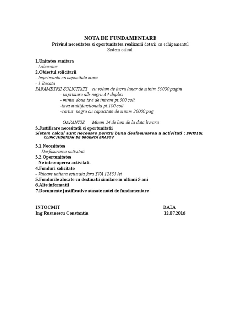 Nota de fundamentare o g. Notă de fundamentare. Model nota de fundamentare achizitionare materiale didactice. Notă de fundamentare la hotărârea guvernului nr.