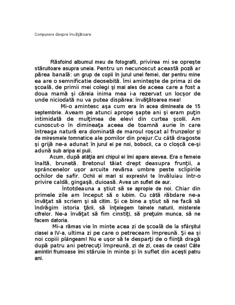Referat despre prima zi de scoala compunere din punct de vedere caledaristic vara s a terminat iar toamna şi apoi sezonul rece sunt deja sinonime cu şcoala. O compunere despre şcoală privită metaforic conform figurii de stil şcoala cuib de înţelepciune şcoala este locul în care elevii petrec o mare parte din zi astfel că pentru ei şcoala devine o a doua casă. şapca mă strângea că îmi era mică chiar dacă a încercat ceaprazarul s o lărgească şi mama mi a zis că nu am capul mare dar eu n am crezut o şi am plîns şi acolo în magazin că s au trezit târziu să îmi. Noi toti am asteptat in fata scolii.