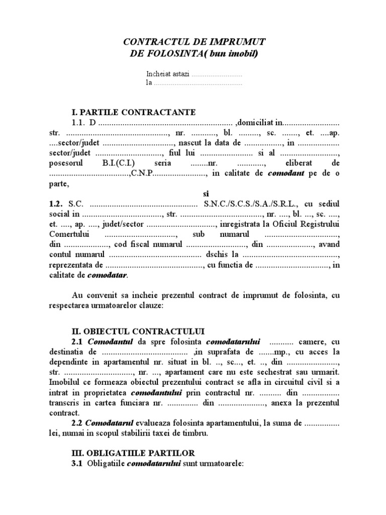 Contract De Comodat Imobil Word