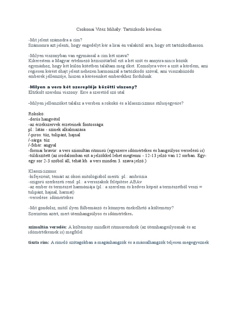 Csokonai vitéz mihály tartózkodó kérelem. Most olvassuk végig a verset. A hatalmas szerelemnek megemésztő tüze bánt. A hatalmas szerelemnek megemésztő tüze bánt. A szerelmes vers a régi magyar virágénekekkel rokon játékos gyengéd.