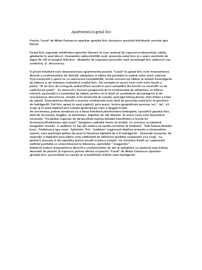 Demonstrati Ca Poezia Lacul Apartine Genului Liric
