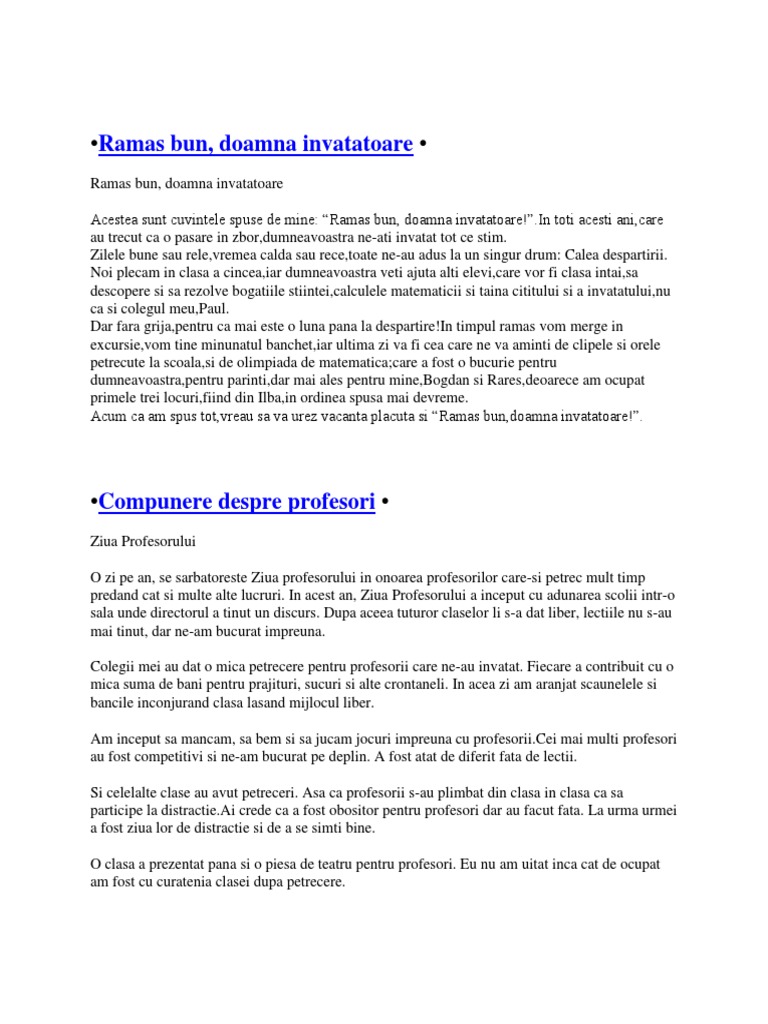 Surpriza pentru prima zi de scoala. Multa sanatate si un an scolar incununat de succes. Permiteţi mi ca in numele clasei a viii a a sa va impartasesc ultimele noastre impresii asupra a tot ceea ce am trăit in aceasta scoală t. Pe peretele unei case din cartierul meu am văzut scris cu litere de o şchioapă.