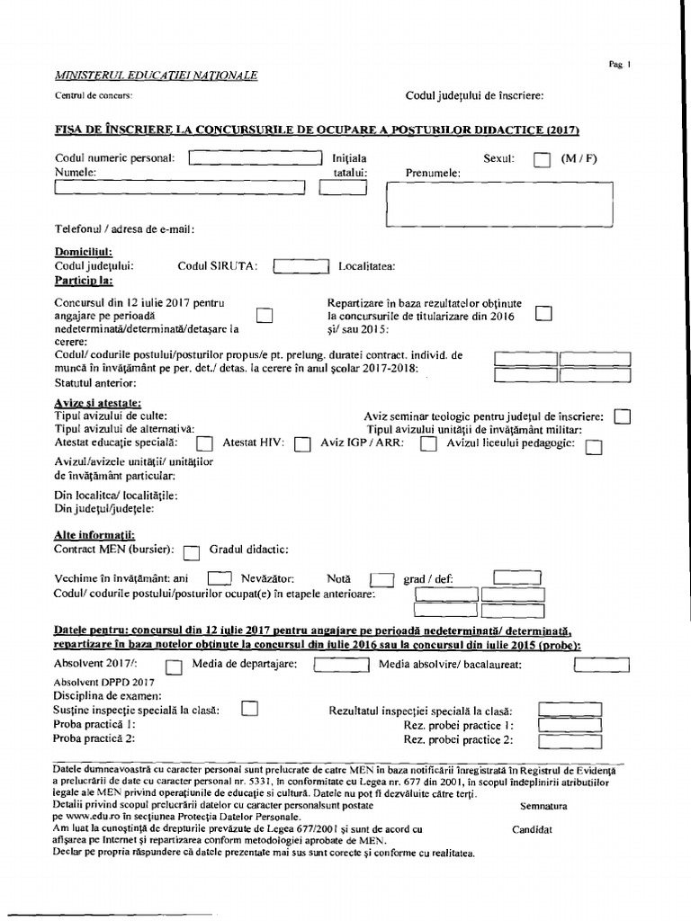 Fisa De Inscriere Titularizare 2018