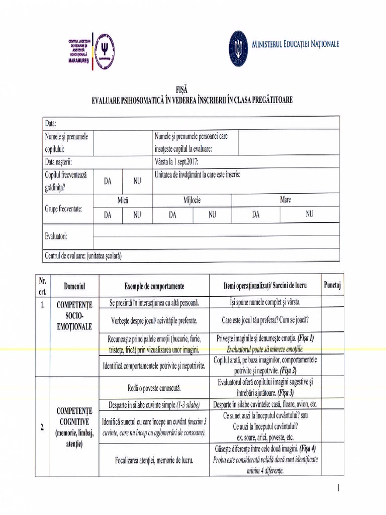 Potrivit metodologiei de inscriere a copiilor in invatamantul primar pentru anul scolar 2017 2018 evaluarea dezvoltarii psihosomatice este obligatorie doar pentru copiii care solicita inscrierea in clasa 0 si implinesc varsta de 6 ani dupa 31 august 2017. Leave a reply cancel reply. Fisele de evaluare psihosomatica argumentare cadru sintetic de referinta fise de evaluare psihosomatica fisa 1 fisa 2 clasa pregatitoare scolaritatea la varsta de 6 ani. 10 iunie 2019 06 46.