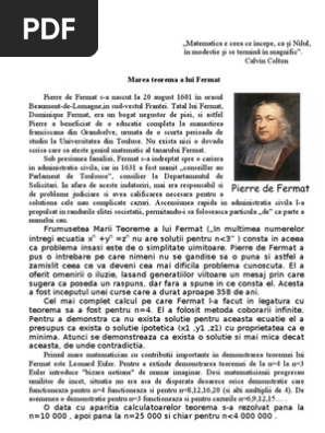 Vreme de 358 de ani marii matematicieni ai lumii au incercat in zadar sa gaseasca demonstratia teoremei lui fermat devenita simbol al misterului. Mica teoremă a lui fermat este o teoremă care afirmă că dacă p este un număr prim și a este un număr întreg care nu este multiplu al lui p atunci. Fisa de lucru teorema lui fermat. Am descoperit o demonstratie cu adevarat minunata dar nu am aici destul spatiu pentru a o scrie acestea sunt cuvintele notate de ilustrul matematician pierre de fermat pe marginea unei pagini din editia aritmeticii lui diofant in 1637.