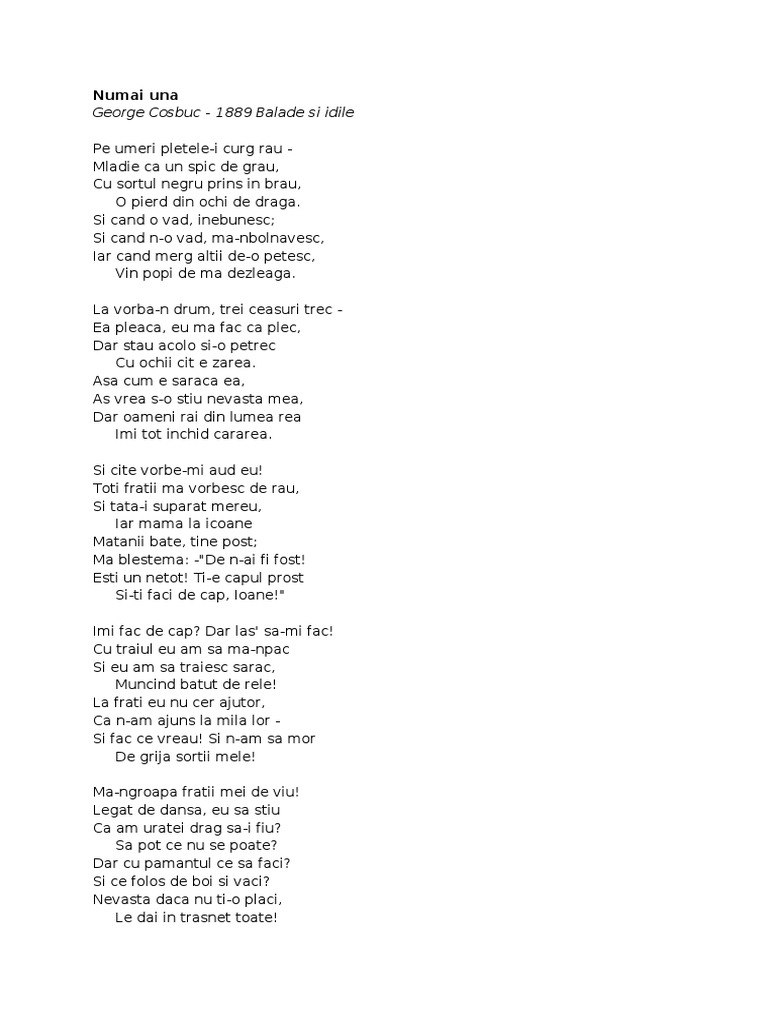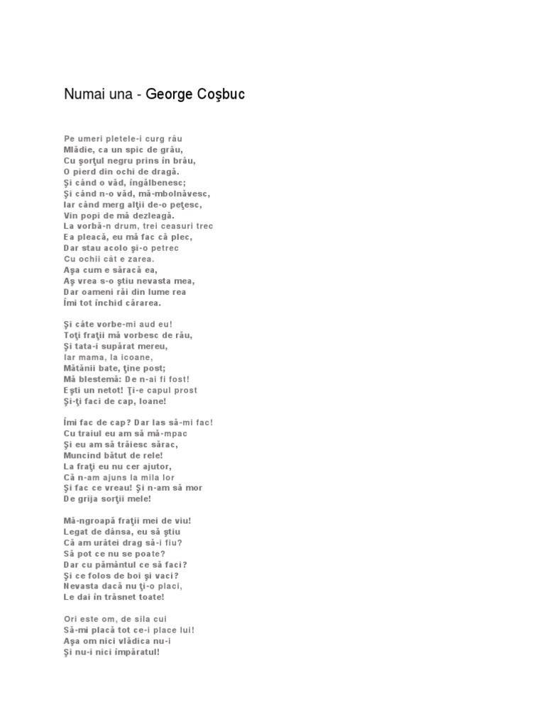 Numai una george cosbuc. All rights are reserved. Asa cum se identifica in perioada preromantica un mic clasicism al scriitorilor anacreontici g. Poezia numai una a lui george cosbuc. Si cand o vad inebunesc.