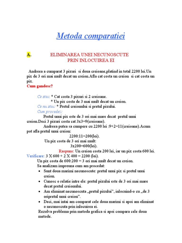 Probleme cu metoda comparatiei rezolvate. Verde predare normală cu prezența tuturor elevilor la școal. Blog borodi sorin. Metoda aceasta de rezolvare este similară cu metoda de rezolvare a sistemelor de ecuatii de gradul i prin reducere. Scrie fractii supraunitare.