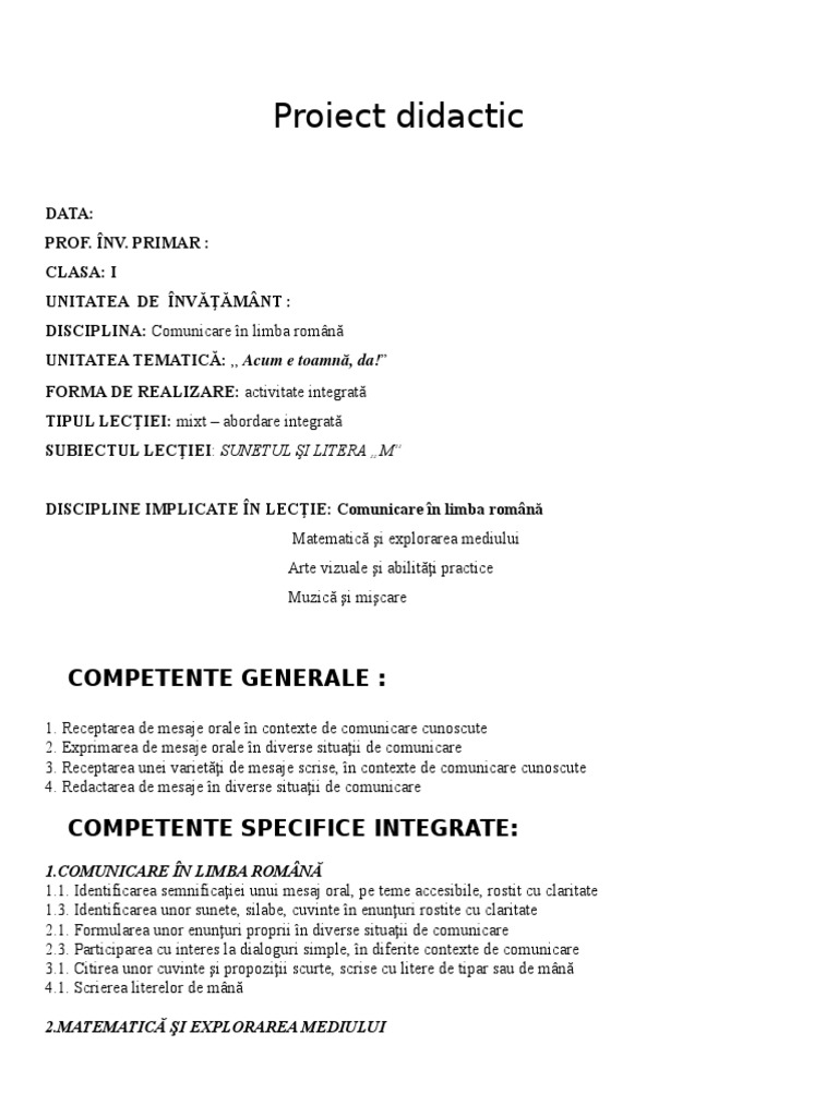 A iii a aria curriculara. Proiect didactic mm clasa pregătitoare. Arte si tehnologii disciplina. Limba și literatura română aria curriculară.