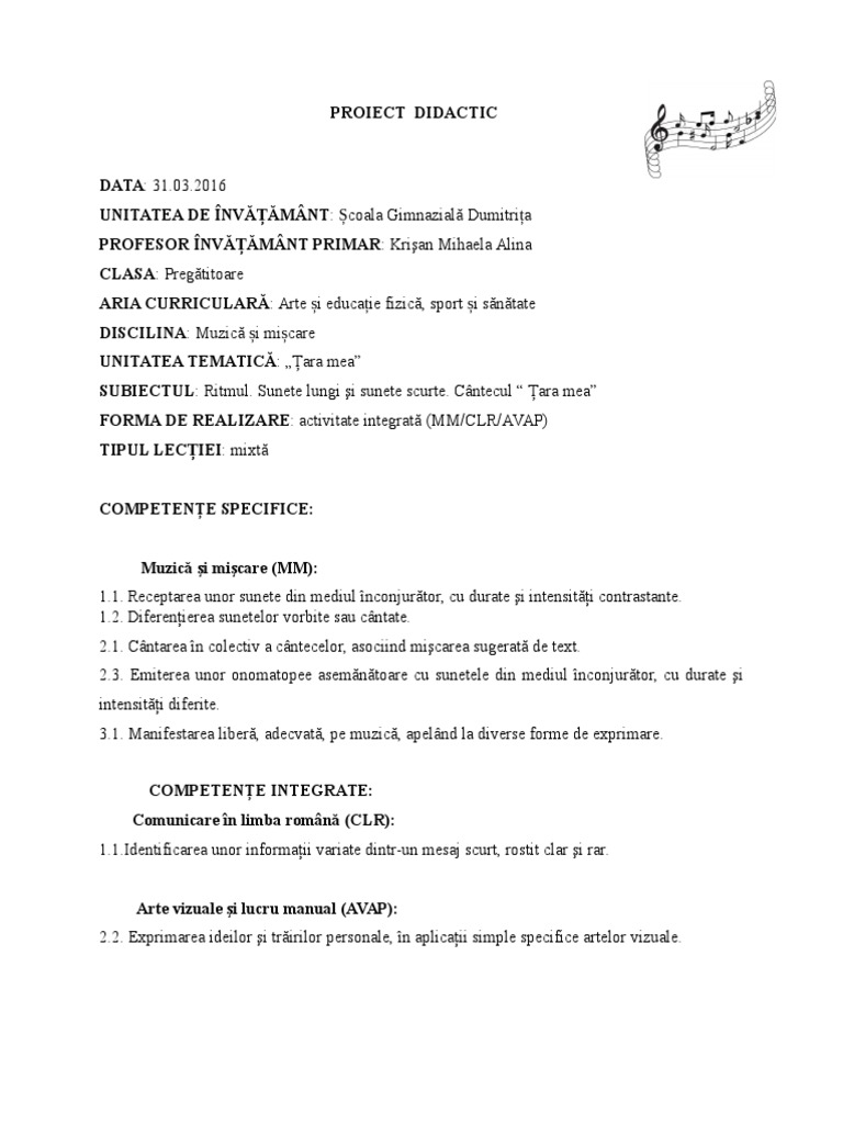 Proiect didactic muzică şi mişcare clasa pregătitoare înv. Proiect didactic unitatea de învățământ. Limba si comunicare disciplina. Puisorul obiecte.