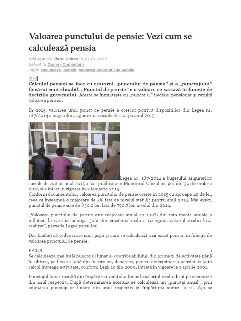 Formula de calcul a pensiei este reprezentată de numărul total de puncte înmulțit cu valoarea punctului de referință vpr. Printre noutățile aduse de noul proiect de lege a pensiilor se numără introducerea masterului și a doctoratului ca perioade necontributive asimilate stagiului de cotizare care se adaugă facultății stagiului militar pensiei de invaliditate concediului medical. Vom raspunde unor intrebari adresate pe portalcodulmuncii ro pentru a lamuri acest aspect. Stagiu de cotizare realizat în sistemul militar recunoscut la stabilirea pensiei în sistemul publicart 20 din legea 164 2001 lege specială ulterioară legii 19 2000 nu mai limitează reciprocitatea recunoaşterii stagiilor doar la pensia pentru limită de vârstă ci permite ca stagiile de cotizare realizate în sistemul militar să fie recunoscute şi la deschiderea drepturilor de.