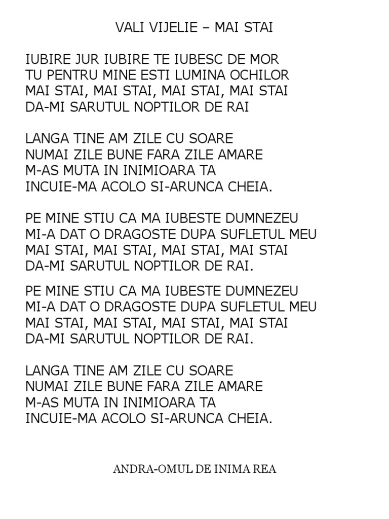 Sarutul noptilor de rai versuri. Asu boby vali vijelie mai stai lyrics. Inima nu fi de piatra sarutul noptilor de rai ochi de catifea chitara inima nu fi de piatra kibori. Piesa andra sarutul noptilor de rai face parte de pe albumul ramai cu mine lansat in anul 2005 la casa de discuri media services. Mii de intrebari nu ma lasa oricat m ai amagi.