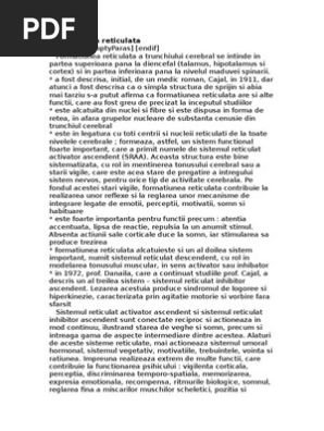 Sistemul reticulat descendent facilitator activator srdf trimite eferenţe spre măduva spinării în special către motoneuronii γ şi α. These neurons connect up with various other parts of the brain. Most neurons at the pontomesencephalic junction that participate in these pathways are located in monoaminergic and cholinergic cell groups. The ascending fibres of the reticular formation in the brainstem defined functionally rather than anatomically according to their control of the level of physiological arousal or activation of the cerebral cortex essential for wakefulness attention and concentration.